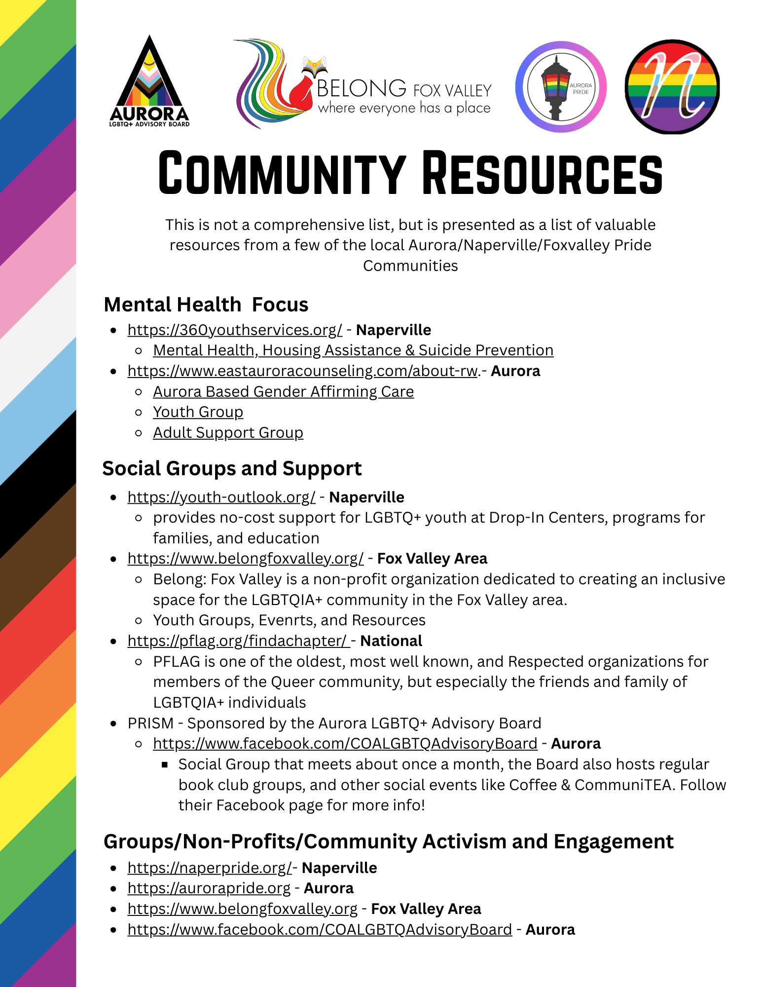 Recently it has been a common question from those outside our rainbow family, and some within, to ask for resources for counseling, social groups, and Peer groups, etc.